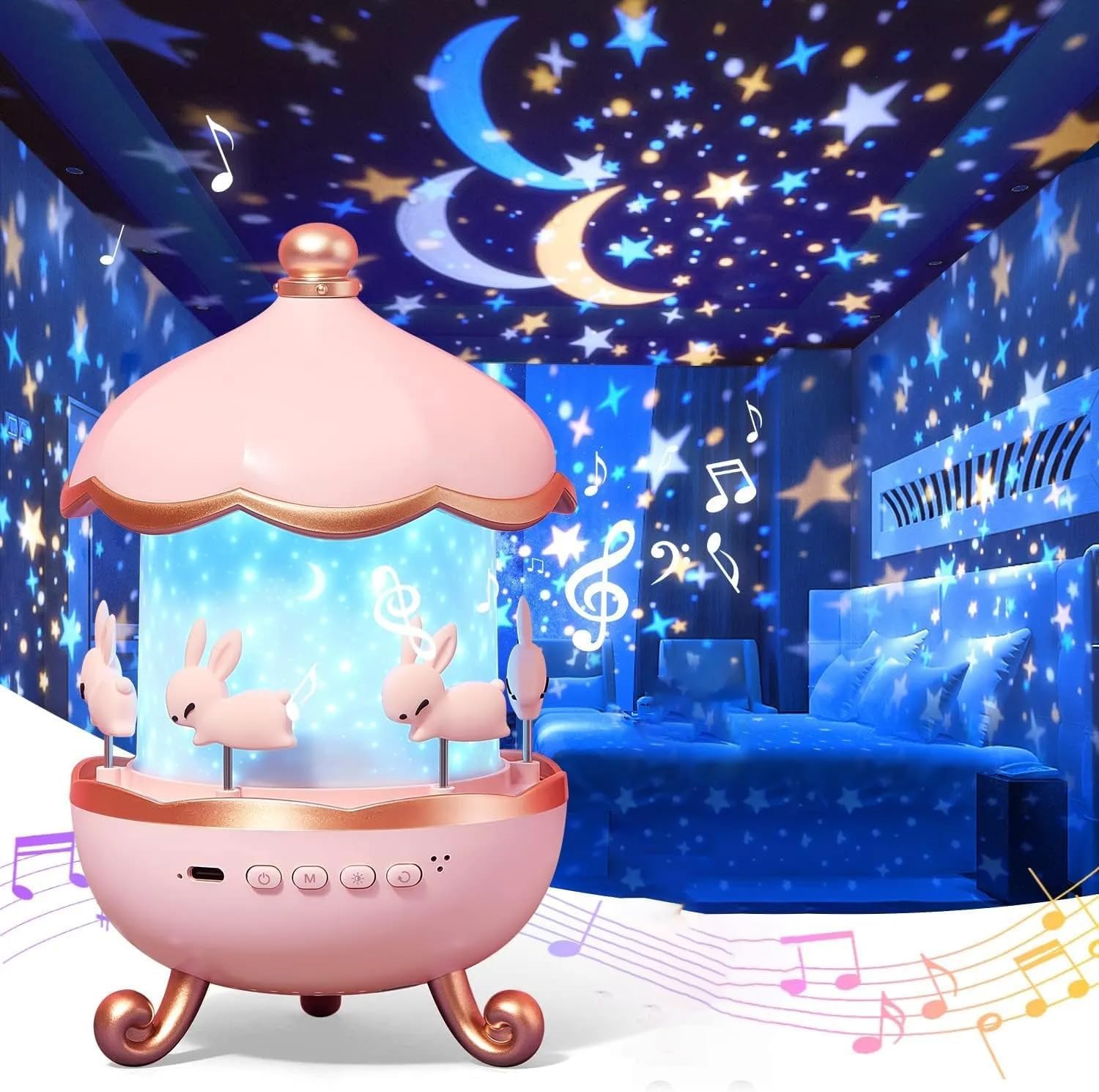 - 🐇【360° Rotating Bunny Night Light】- You can projection colorful stars, animals onto your ceiling and walls with this rotating kids night light projector. - USB Rechargeable Unicorn Night Light Unicorn night light for kids is type-c rechargeable by USB cable, power bank or laptop and can be used anywhere, no need to change the battery for this night light projector.